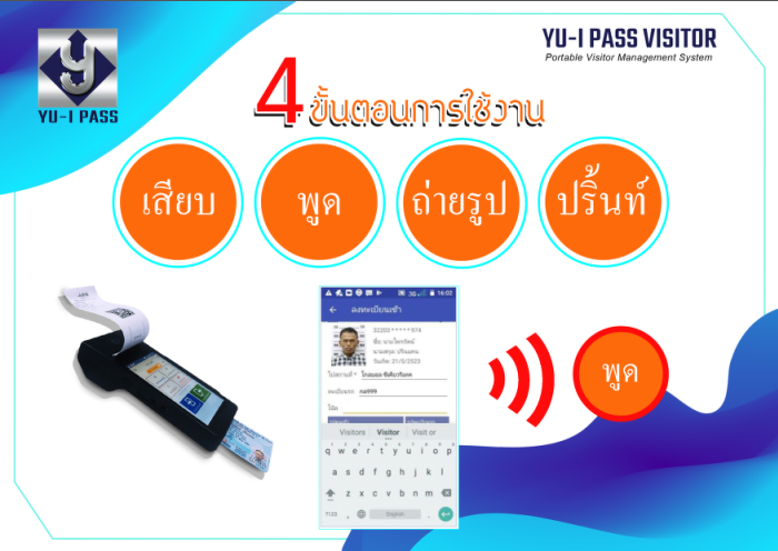 YU-I PASS VISITOR  เป็นอุปกรณ์บันทึกข้อมูลของบุคคลที่มาติดต่อในพื้นที่ อาคาร หรือหน่วยงานบริษัท โดยตัวเครื่องสามารถบันทึกรายละเอียดข้อมูลของผู้ที่มาติดต่อในพื้นที่ โดยอาศัยชิปการ์ดบนบัตรประชาชน ซึ่งสามารถบันทึกทั้งภาพ และมีระบบพิมพ์ สลิปข้อมูลสำคัญของการติดต่อจากตัวเครื่อง และรองรับการบันทึกข้อมูลผ่าน QR-Code โดยจัดเก็บข้อมูลบนระบบ Cloud Server ช่วยให้สามารถเรียกดูข้อมูลได้ทุกที่ทุกเวลาผ่าน Internet